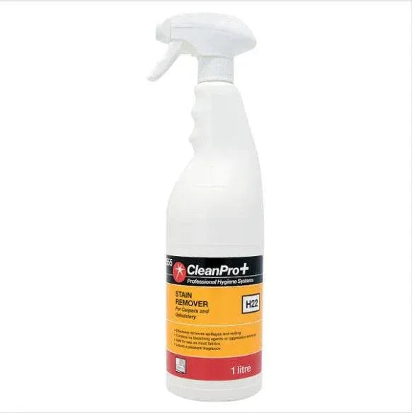 CleanPro+ Stain Remover H22 (1 Litre) is a professional-grade, fabric-safe stain remover designed for effective treatment of everyday spillages and stubborn soiling on carpets and upholstery. Free from bleach and aggressive solvents, it is suitable for use on most fabric types and leaves behind a pleasant, fresh fragrance. Ideal for commercial and domestic cleaning, this ready-to-use formula is part of the trusted CleanPro+ hygiene system.